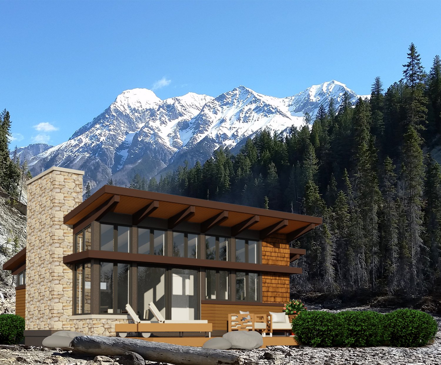 Canada-150 Series:  The British Columbia-570 small home plan pays tribute to Frank Lloyd Wright’s contribution to residential architecture. His idea that one should “Study nature, love nature, stay close to nature….” is echoed  by this beautiful province. His Usonian homes were designed to be affordable and comfortable using simple materials and construction featuring walls of doors and windows, built-in furnishings and cabinets. The large stone fireplace is the heart of this small home which features: