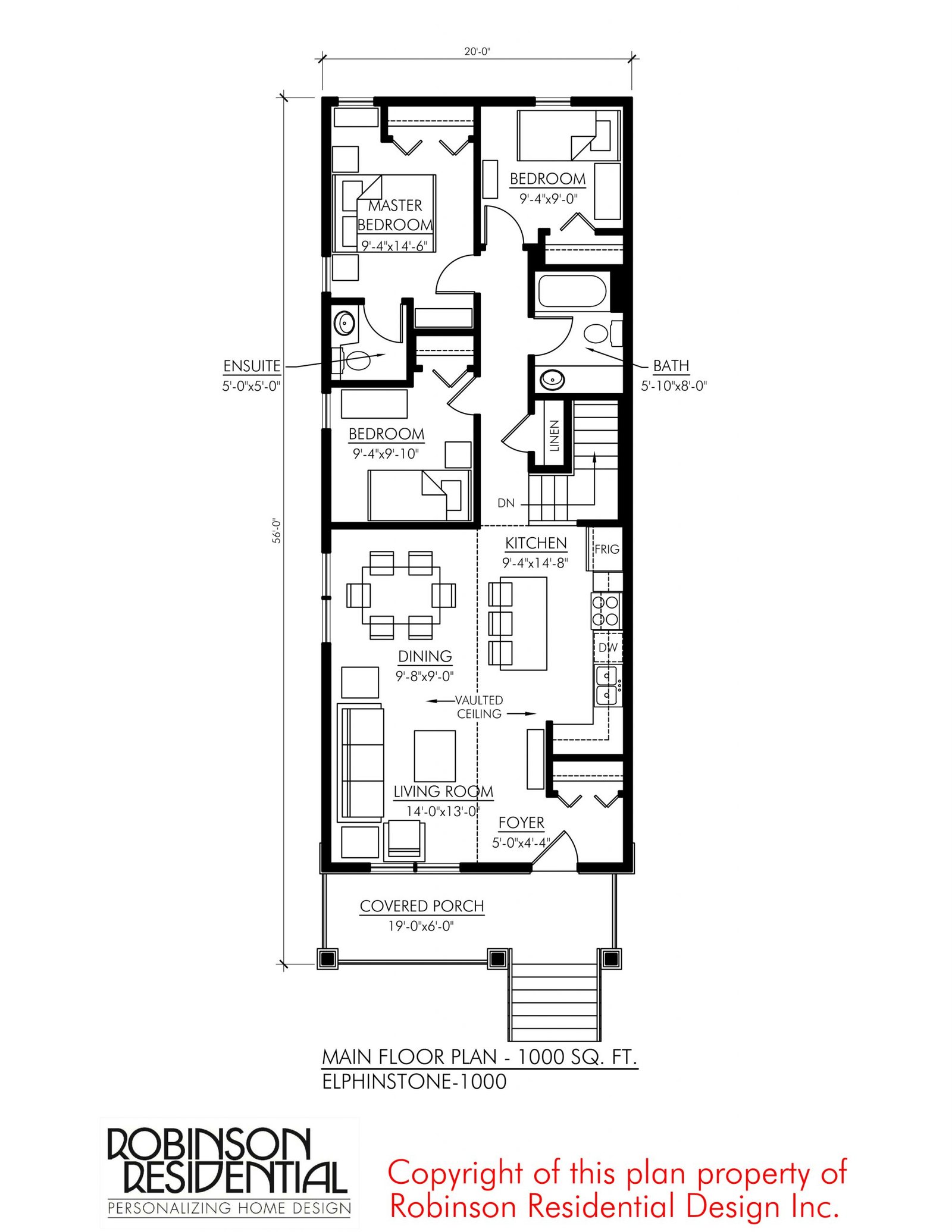 The Craftsman Elphinstone-1000 is a bungalow designed for a corner lot or wider lot where side windows can be accommodated.  This craftsman plan features: