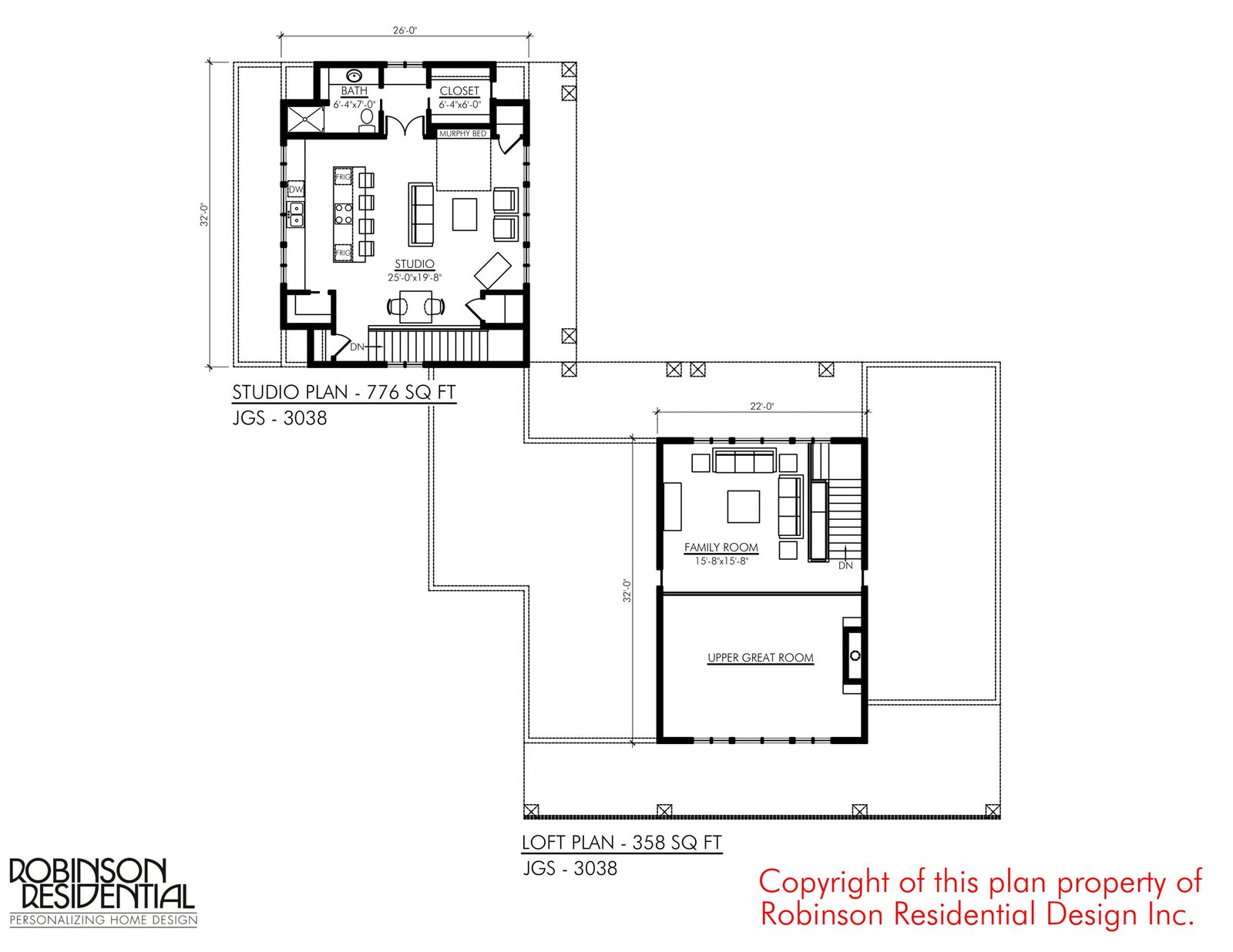 In some building codes, a loft accessible via ship’s ladder, rather than by a stair, is not recognized as “living space”. Therefore, the loft area is not included in the square footage calculation on the floor plan. The approved use of these lofts should be verified with local building authorities. If the loft is accessible via a stair, the loft space is included in the square footage calculation on the home plan.