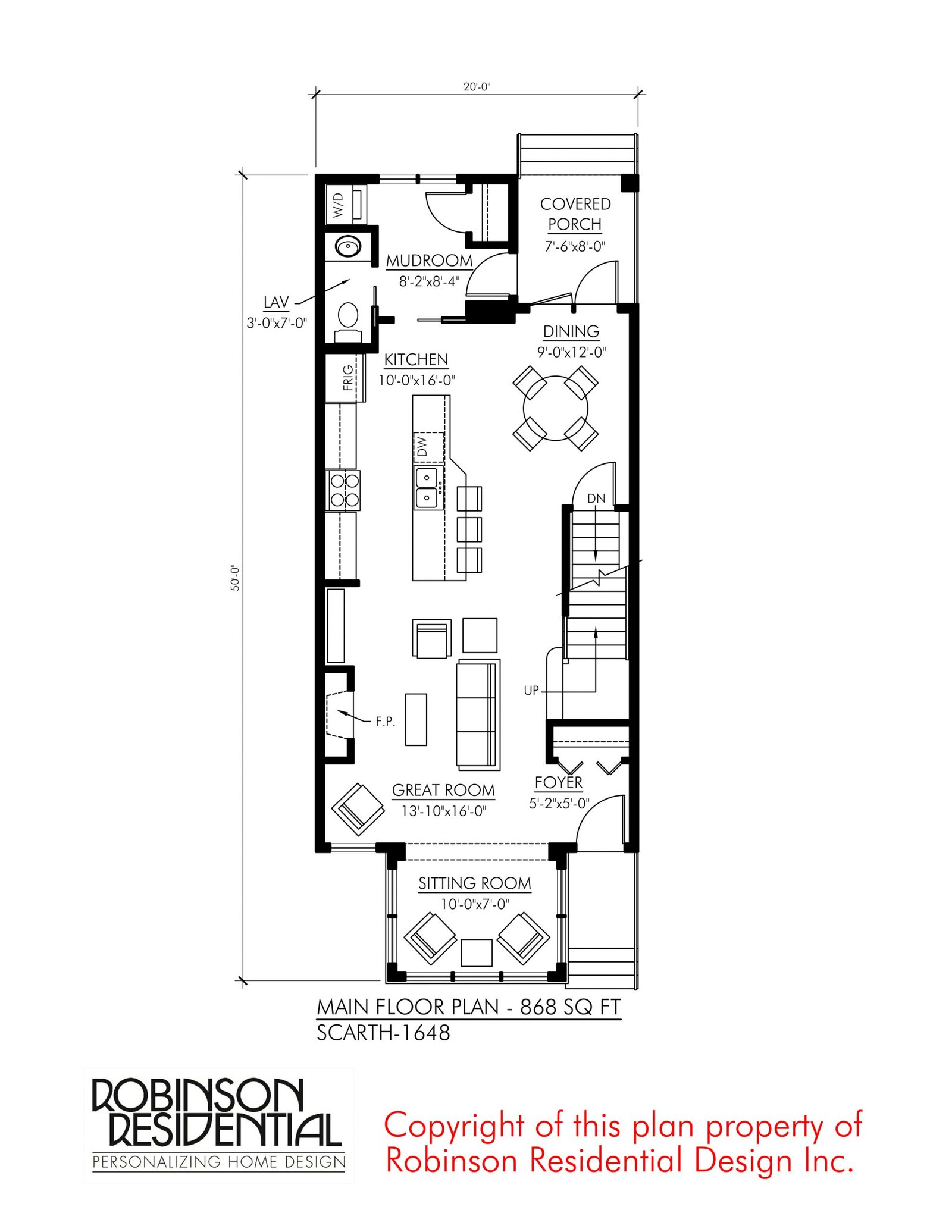 The Craftsman Scarth-1684 is a 2 storey plan with a host of features on a small footprint, suited for a narrow lot.  This Craftsman home plan features: