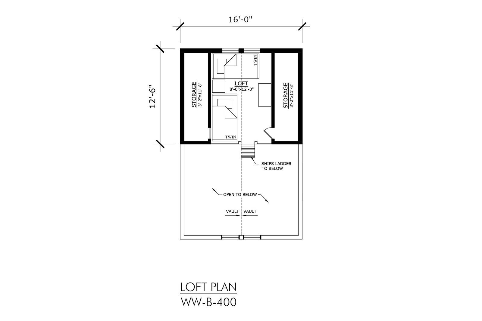 In some building codes, a loft accessible via ship’s ladder, rather than by a stair, is not recognized as “living space”. Therefore, the loft area is not included in the square footage calculation on the floor plan. The approved use of these lofts should be verified with local building authorities. If the loft is accessible via a stair, the loft space is included in the square footage calculation on the home plan.