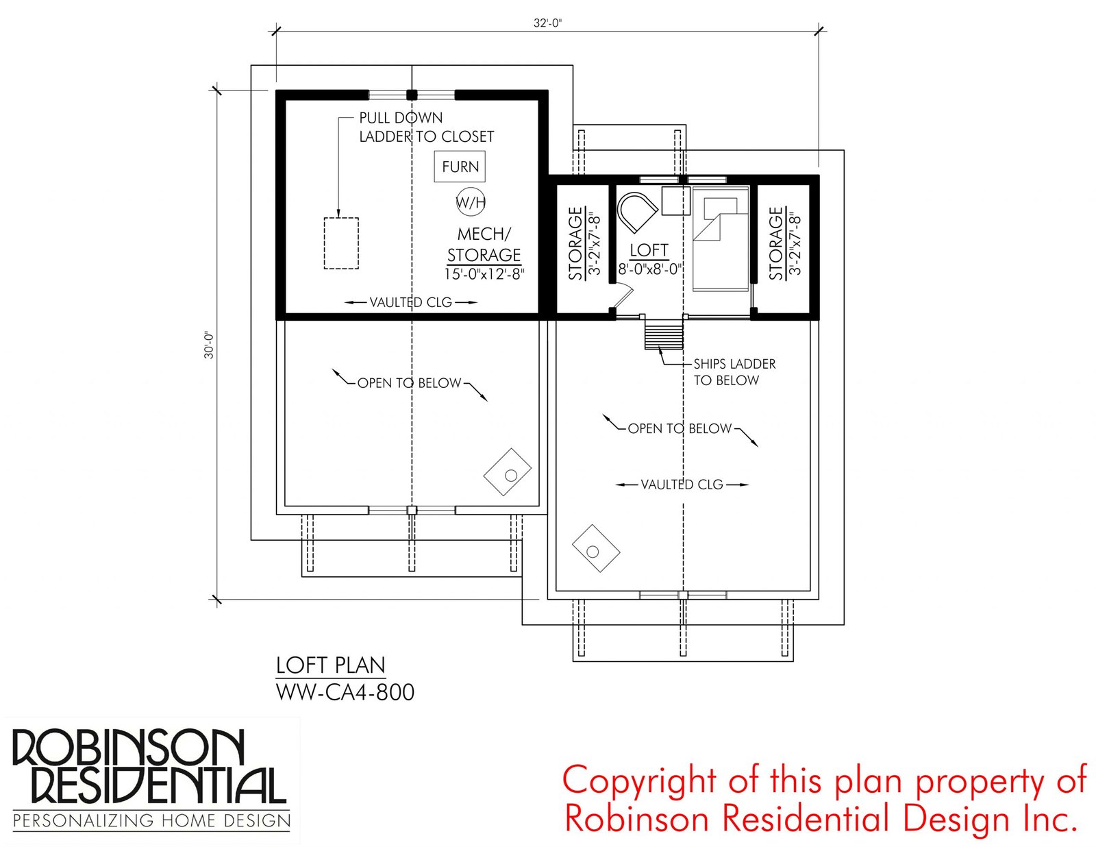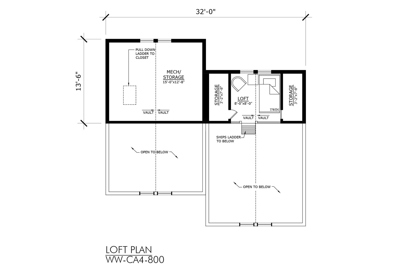 In some building codes, a loft accessible via ship’s ladder, rather than by a stair, is not recognized as “living space”. Therefore, the loft area is not included in the square footage calculation on the floor plan. The approved use of these lofts should be verified with local building authorities. If the loft is accessible via a stair, the loft space is included in the square footage calculation on the home plan.
