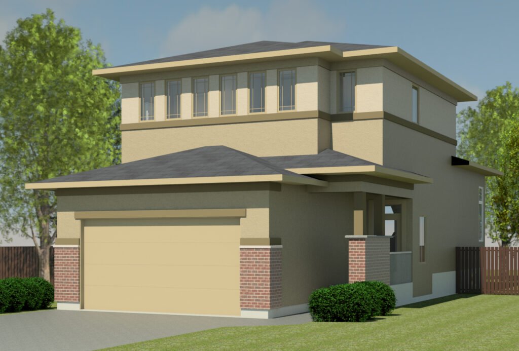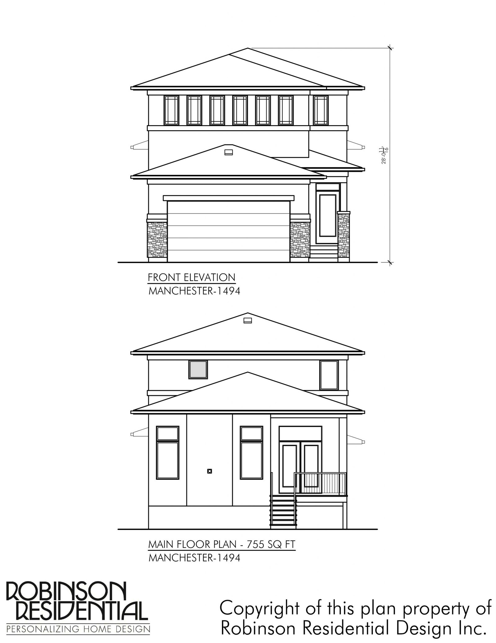 The Prairie Manchester-1494 is a 2 storey house with a spacious interior and a central kitchen layout. This prairie house plan features: