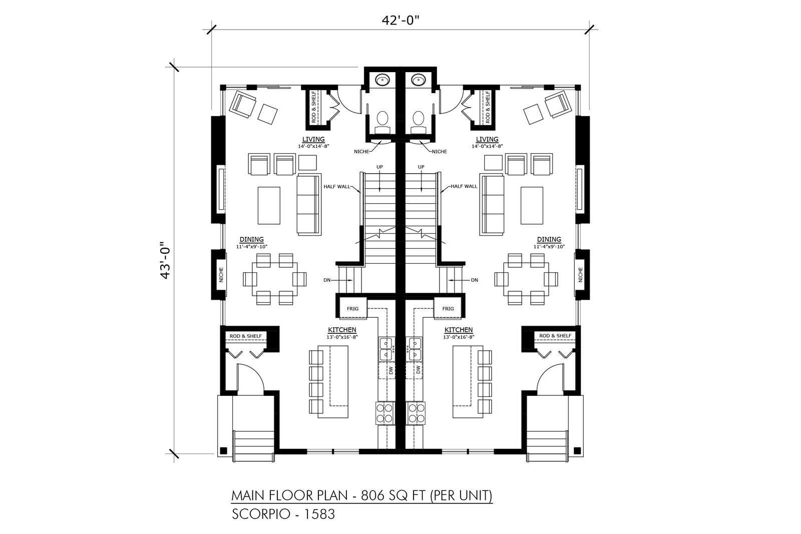 | Bath | 3 bathrooms per unit |